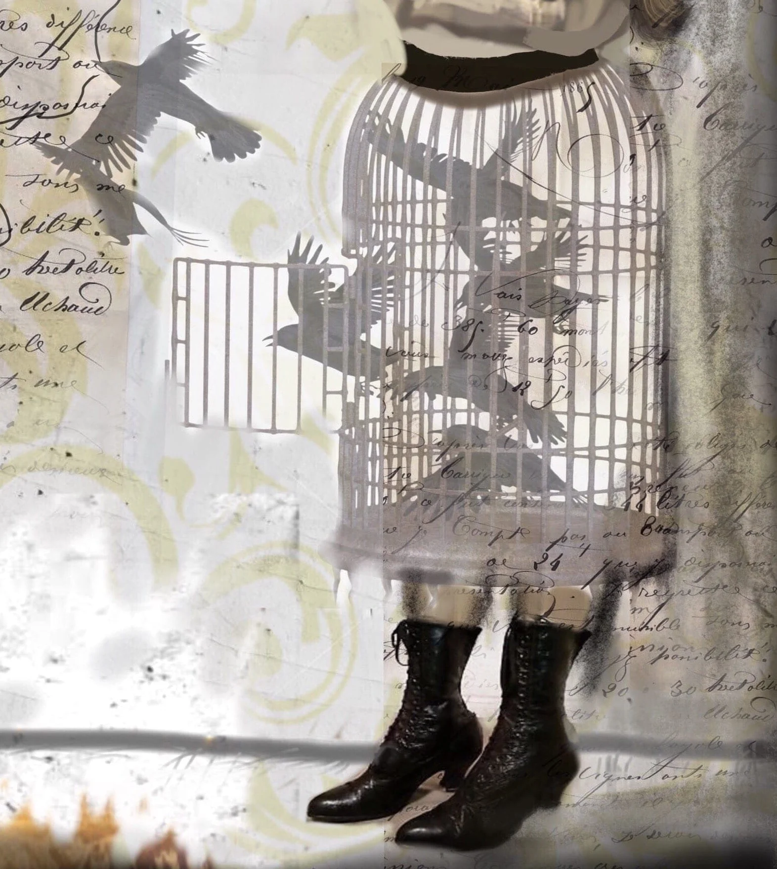 Whimsical vintage figurative collage and wax
